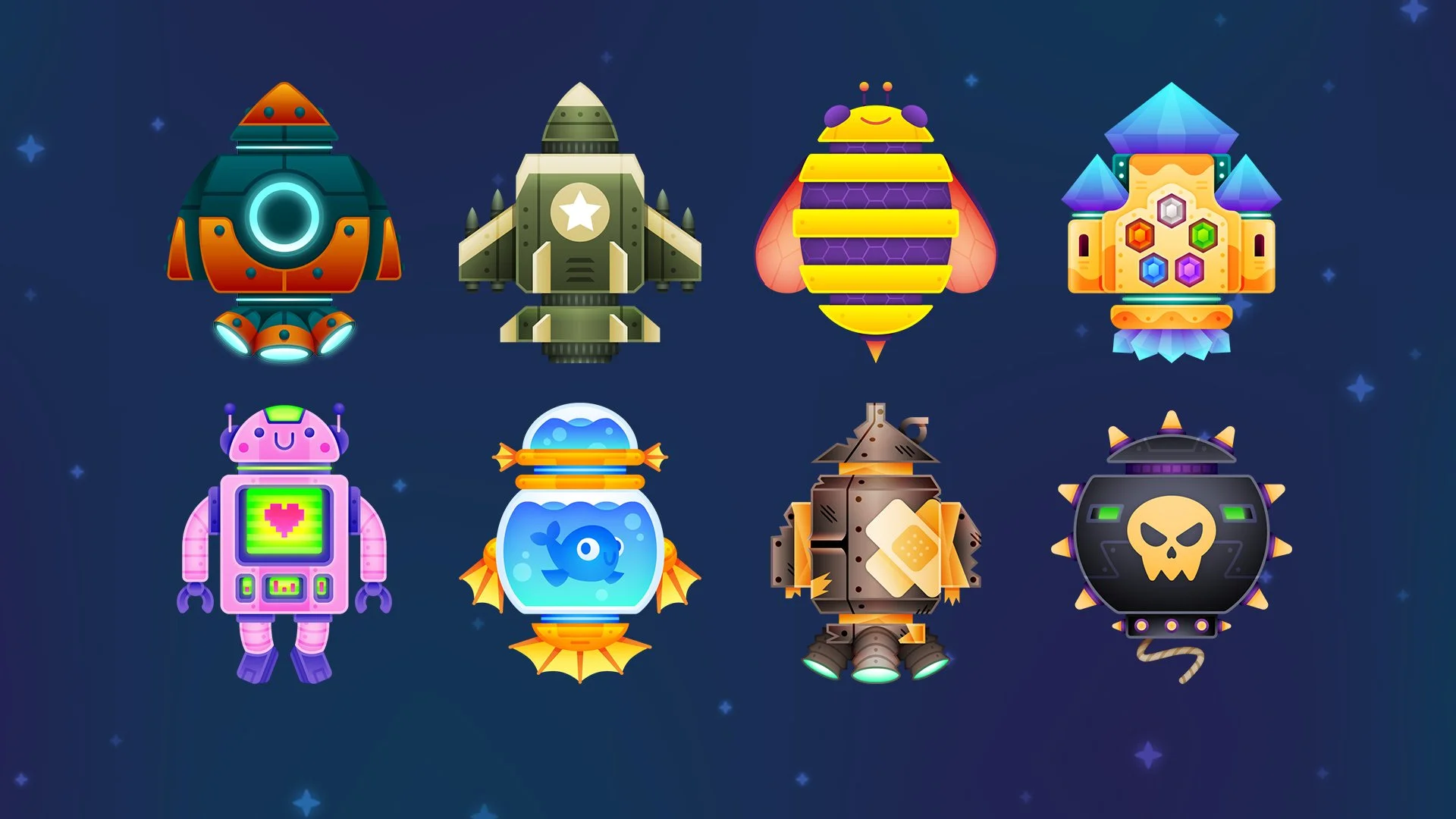 One of the largest (and most fun) tasks was designing a system of interchangeable ship parts. Players are motivated to keep playing the game by trading in collected gems at the Intergalactic Outpost. As soon as we implemented even a few of these ships we became overwhelmed with requests from our test groups for more! To us, that meant that the ships were a success.